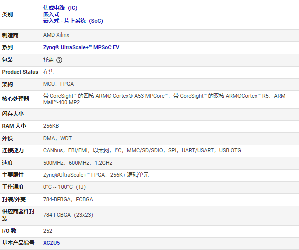 XCZU5EV-1SFVC784E XILINX/赛灵思 BGA